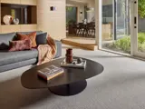 Warm tones like blush and mustard, or cool tones like navy and teal, complement grey carpets beautifully.